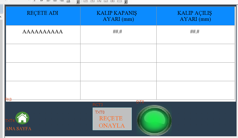 Birinci sıradaki alana Reçete Adı Kalıp kapanış ve Açılış ayalarını giriyorum ve reçete onaylıyorum PLC ye aktarılıyor İkinci sıradaki alana da aynı şekilde istediğim değerleri giriyorum ancak PLC ye aktarmıyor