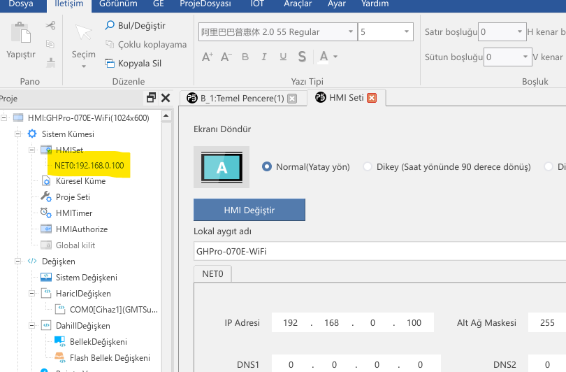 Aşağıdaki resimde sarı işaretli yeri çift tıkladığımızda HMI Seti diye bir sekme açılıyor. Bu bölümden HMI değiştirilebilir.